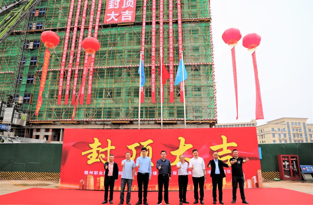 4月23日上午,经过200天紧张有序施工,学院(北区)教学楼、学生宿舍和食堂建设项目完成最后一方混凝土浇筑,主体结构全面封顶。学院党委书记温学延,党委委员、副院长赖昭忠,赣州市建筑设计研究院副总经理金晟,赣州城投工程管理有限公司总工程师曾绍敏,施工总承包方等各参建单位参加项目封顶仪式。