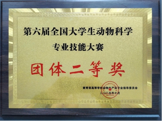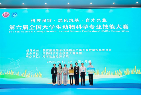 10月17日至19日,2025年第六届全国大学生动物科学专业技能大赛决赛在河南郑州举行,我校参赛队荣获团体二等奖。