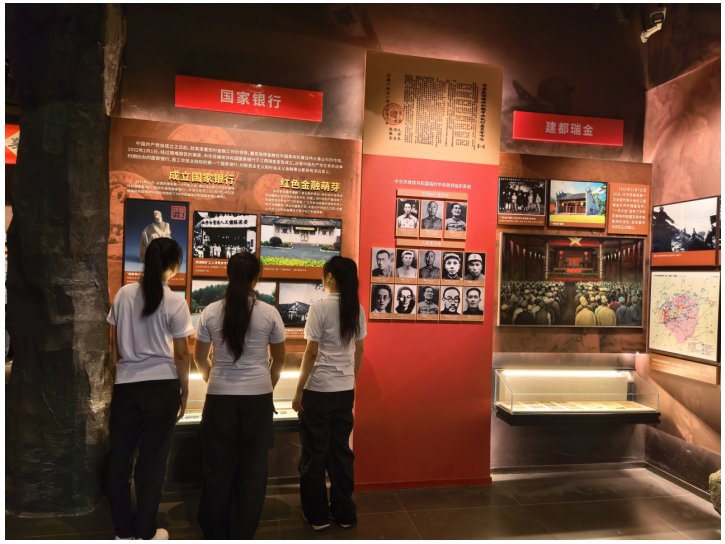 在中华苏维埃共和国国家银行秘密金库陈展馆,学生们通过史料记载了解到在战火纷飞的年代,“秘密金库”是如何做到绝对保密,一是毛主席亲自选址,只有少数领导人知晓;二是账册由毛泽民掌管,登记的时候用“黄酒”、“白酒”来代替黄金、白银;三是毛泽覃同志在担任石城支行行长的时候,配合了秘密金库的保护工作;四是红军战士将这些“镇国之宝”运到石城,都是分段运输,整个过程非常保密;五是这些物资都藏于地下,外人一概不知;六是红军长征前这些物资一夜之间转移完毕,没有留下任何痕迹。