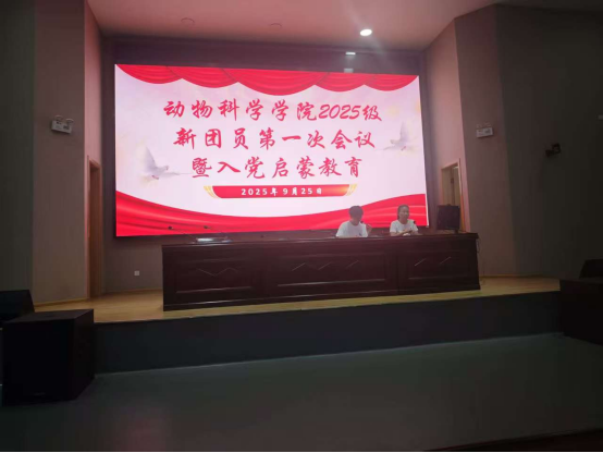 为帮助2025级新团员深入学习党的理论知识,提升党性修养,明确党员责任义务,了解党员发展流程,动物科学学院团总支于9月25日晚在公共实训基地报告厅开展了以“筑牢思想根基,争做先锋表率”为主题的2025级新团员第一次会议暨入党启蒙教育培训。