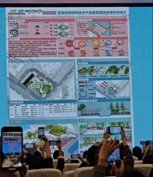 比赛当日,面对陌生的场地条件与紧张的时间限制,参赛师生团队沉着应对,快速完成场地现状分析,学生组以“五感融园、智享低碳”为设计理念,合理规划休闲观光、集会交流等功能空间,选用赣南乡土树种构建乔灌草立体植物群落,其方案因“空间尺度精准、交通流线清晰、地域特色鲜明”获得评审认可;教师组则聚焦高新技术产业园区附属绿地的实用性与经济性,在设计中立足场地特质,打造具有现代科技感和释放高新技术人才活力的创意空间,方案构思与图面表达均展现出扎实的教学实践功底与行业服务能力。最终,两支队伍双双斩获三等奖,实现学校在该国家级赛事中的“开门红”。