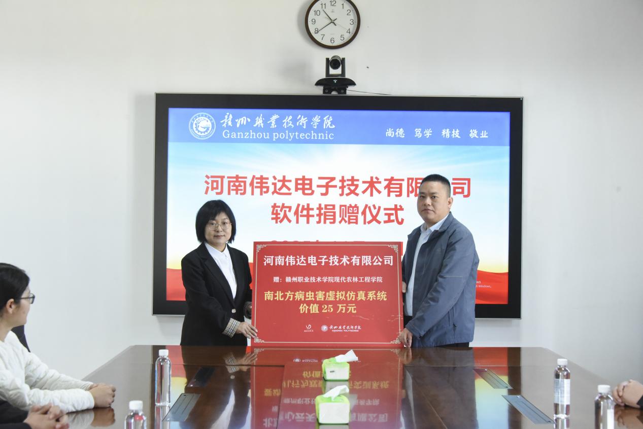 此次捐赠不仅为现代农林工程学院的教学科研提供了宝贵的资源,也彰显了河南伟达电子技术有限公司的社会责任感与担当精神。双方表示,将以此次合作为起点,携手共进,为培养更多优秀的农林人才,推动农业现代化发展贡献力量。