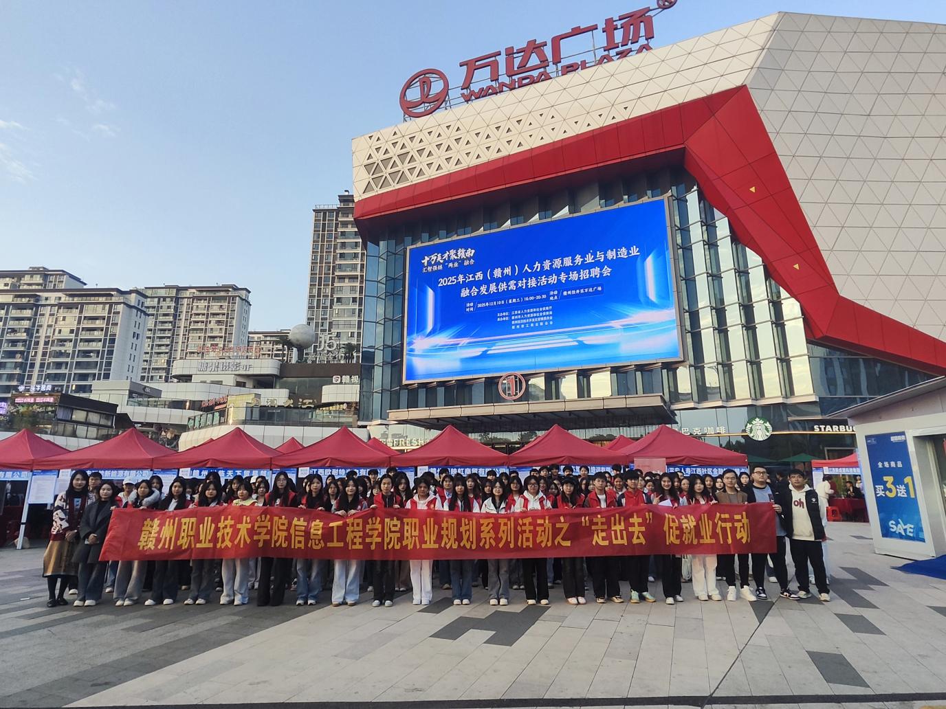 12月10日,经开区万达广场内求职氛围浓厚,信息工程学院刘康兴、王观燕、应文健、肖芳、魏焕宇五位教师带领152名学生,参与江西省人力资源和社会保障厅主办的专场招聘会。作为学院职业规划系列活动的“实践篇”,此次“走出去”行动与12月3日“请进来”的职业规划大赛形成联动,通过“规划指导—岗位对接”的全链条服务,为学生打通从校园到职场的“最后一公里”,尽显学院对学生实习就业工作的深度关切与创新探索。