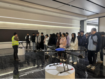 完成系统的虚拟仿真训练与考核后,学生们前往长空一号(江西)无人机基地进行实地进阶学习。在基地,学生们首先集中进行了深化理论课程学习,巩固并拓展了作业的核心知识要点。随后分组参观了无人机技术展厅,通过近距离观摩行业前沿设备与技术解决方案,同学们对智慧农业的应用现状与未来趋势有了更直观、更深刻的理解。