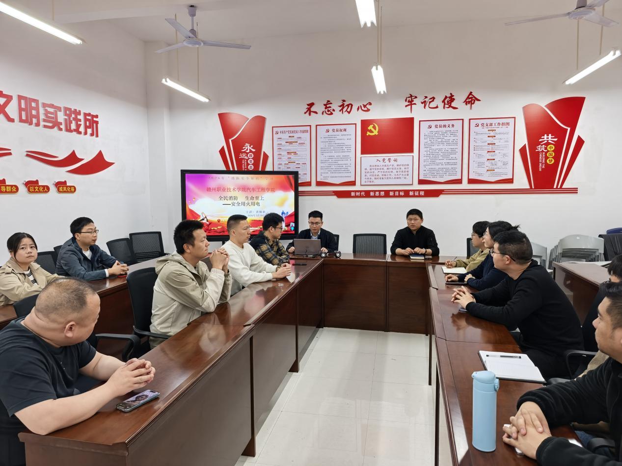 为落实消防安全工作要求,强化相关人员消防安全意识,3月30日,汽车工程学院特邀赣州市应急服务有限公司黄焕新开展消防安全专题讲座。讲座由学院党总支副书记张诗咏主持,学院全体辅导员及实训室管理员参加培训。