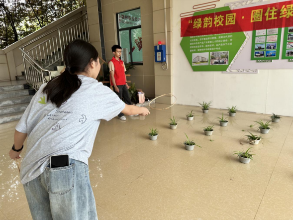 为学习贯彻习近平生态文明思想,丰富学生课余文化生活,普及植物科普知识,传递“爱绿、护绿、植绿”的环保理念,引导青年学子感受自然之美,4月15日,现代农林工程学院团总支青年志愿者协会在陆羽楼架空层举办“绿韵校园·圈住绿意”植物套圈主题活动。活动将趣味套圈与鲜活绿植巧妙融合,为春日校园增添一抹清新亮色,洋溢着青春与自然交融的美好气息。