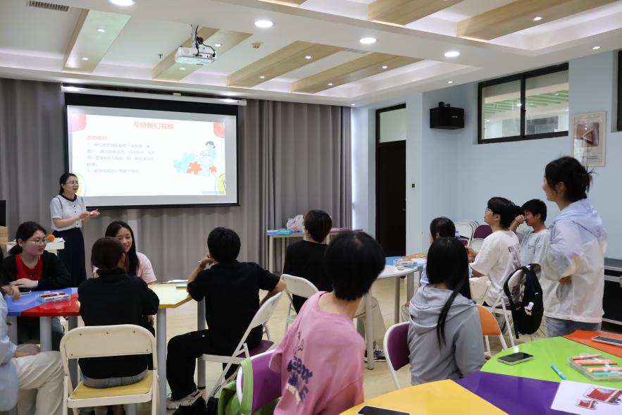 本次活动持续约90分钟,按照暖身活动、转换阶段、工作阶段和结束总结四大模块有序推进,环节设计层层递进,兼具趣味性与实用性。活动伊始,同学们通过“拼图组队”和“滚雪球”自我介绍等趣味破冰游戏迅速打破陌生感,组建起3支充满活力的团队。随后,各小组成员共同商议队名、口号,签订团队契约并推选组长,迅速凝聚团队共识,营造出轻松融洽、积极向上的活动氛围。