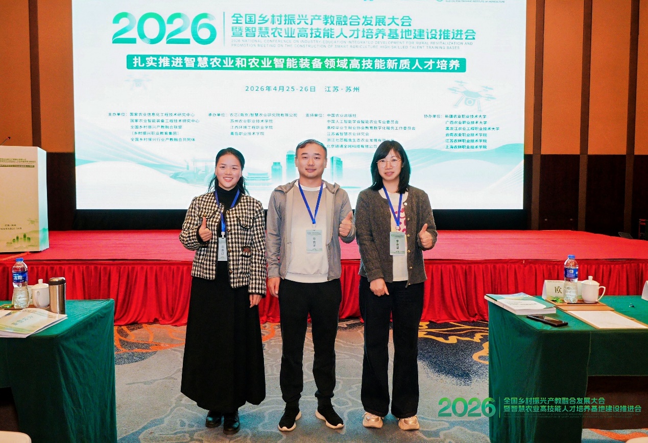 4月,现代农林工程学院和信息工程学院教师代表参加了在江苏苏州举办的“2026全国乡村振兴产教融合发展大会暨智慧农业高技能人才培养基地建设推进会”,与全国职业院校、科研机构及企业专家共商智慧农业与农业智能装备领域高技能新质人才培育。