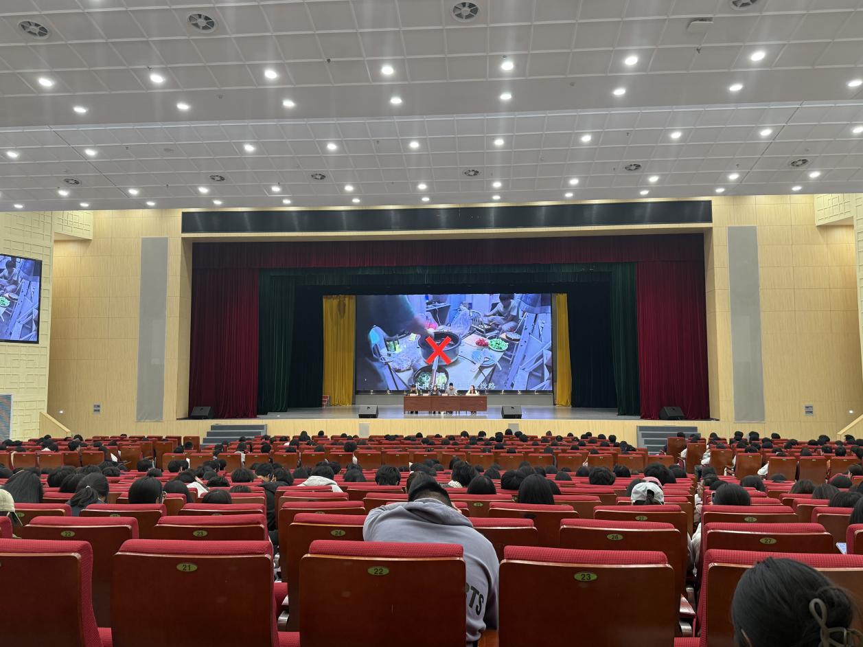 大会伊始,现场播放了安全教育警示片。影片通过真实事故案例与典型场景重现,直观展示了消防安全、宿舍用电等方面的潜在风险。一幕幕触目惊心的画面让在场师生深受震撼,进一步敲响了忽视安全隐患必将付出沉重代价的思想警钟。