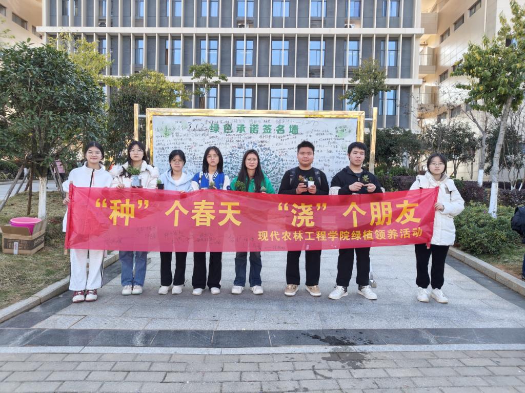 春回大地万物生,植树添绿正当时,在第46个植树节到来之际,现代农林工程学院党支部牵头,带领农林专业教师、团支部、学生会、青年志愿者协会在陆羽楼掀起一股绿色热潮,面向全校师生开展了一场以“‘种’个春天,‘浇’个朋友”为主题的植树节绿植养护活动。
