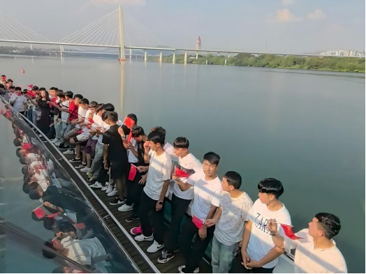 学子们走进江南宋城,秋日阳光下,古老的城墙静静立着,砖石上满是岁月的痕迹。登上八境台,眼前是章江和贡江交汇的景色。同学们在这里齐声诵读《少年中国说》,清朗的声音伴着江风飘向远方。站在郁孤台上,看着脚下流淌的赣江,老师带着大家念起辛弃疾的“郁孤台下清江水”。这些几百年前的词句,今天读来依然能感受到那份深沉的家国情怀。傍晚时分,大家登上“水晶之恋”游船。船在江面上缓缓前行,微风拂面,同学们三三两两聚在一起,聊着这一天的所见所感。古城墙上斑驳的砖石、八境台上的诵读声、郁孤台上的古诗词,都成了他们这个秋天特别的记忆。