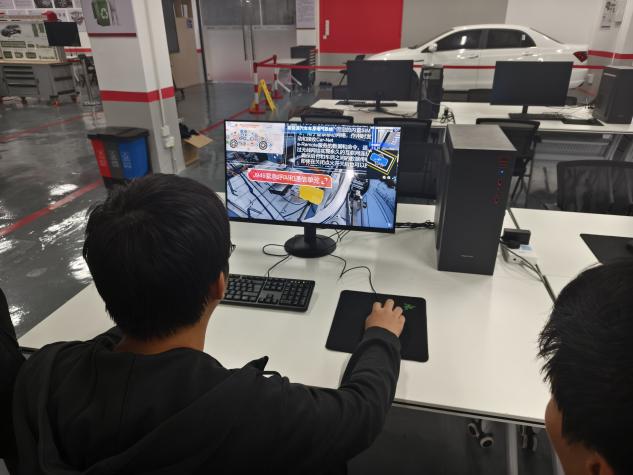 活动特别设置了“我是诊断师”互动环节,参与者可亲手操作诊断仪器检测车辆故障,或通过虚拟仿真平台设备模拟新能源汽车维护检测流程。参与学生表示:“原来检修电动车这么酷,我以后要好好学这个专业!”教研室负责人介绍,实训室开放日采用“师傅带徒弟”的培养模式,使用比亚迪、上汽大众id系列新能源汽车设备、弗迪电池等企业设备产品进行实践操作,确保教学内容与产业需求无缝对接。