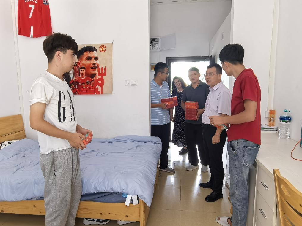 中秋国庆双节将至,为让阿克陶县来赣培训学生深切感受学校大家庭的温暖,9月30日,学校党委委员温继荣带领汽车工程学院党支部书记、院长孙恺,支部副书记张诗咏深入学生寝室,为同学们发放中秋月饼并送上节日祝福,同步强调国庆假期安全注意事项,确保大家度过平安祥和、充实愉快的双节。