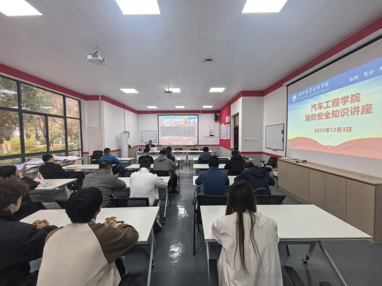 12月3日,汽车工程学院特邀赣州市社安应急服务有限公司侯建平老师为本院师生开展消防安全知识专题讲座。
