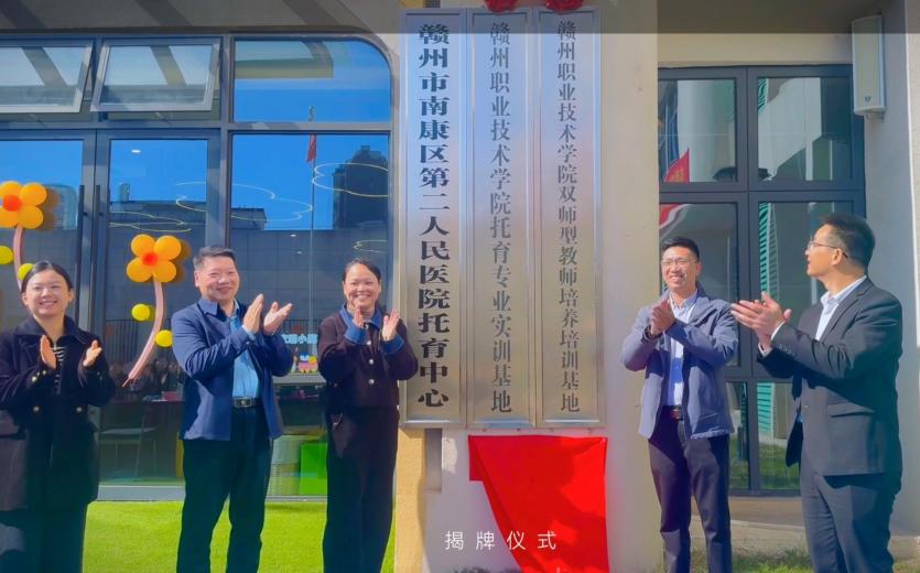随后,在全场嘉宾的见证下,双方正式签订校企合作协议,并为“赣州职业技术学院托育专业实训基地”“赣州职业技术学院‘双师型’教师培养培训基地”揭牌