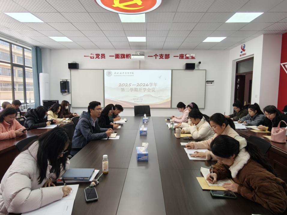 3 月 5 日下午,现代服务学院全体教师齐聚 A11-226 会议室,召开新学期教职工会议。会议由学院负责人扶明明主持,旨在明确新学期工作方向,凝聚全院力量,推动各项工作高质量开展。
