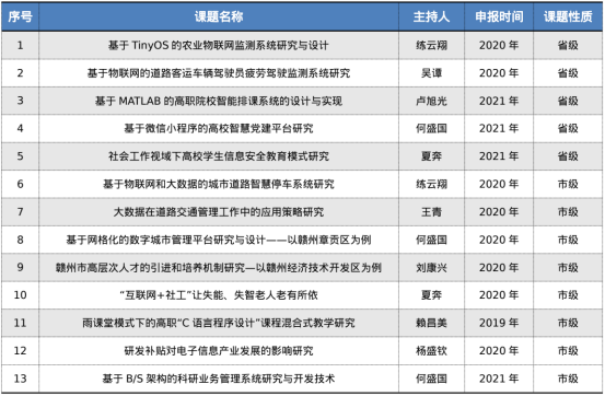 信息工程系在2020-2021年共申报了5项省级科研课题,8项市级科研课题。