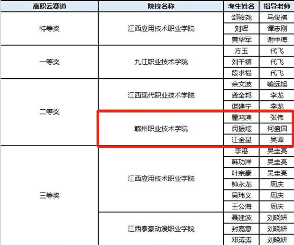 在本次省决赛中,我院2020级云计算三年制1班的三名学生瞿鸿滨、闵振炫和江金星不负众望,脱颖而出,荣获高职云赛道省赛二等奖。